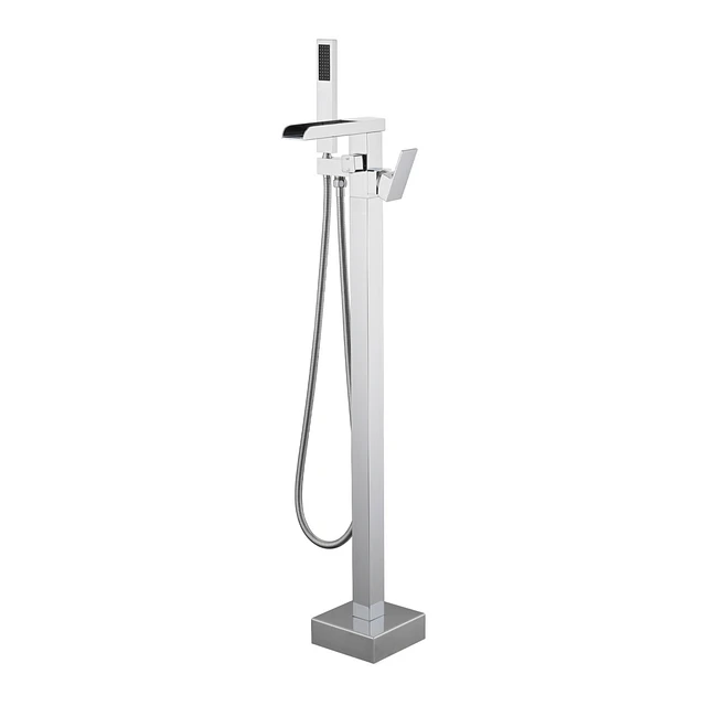 Single-Handle Freestanding Tub Faucet with Hand Shower Brass Waterfall Floor Mount Tub Filler in Matte Black