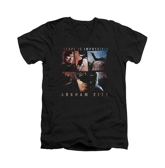 Batman Men's Arkham City Escape Is Impossible Short Sleeve Adult V Neck Tee / T-Shirt