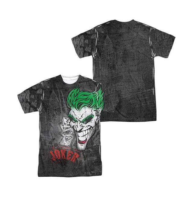 Batman Mens Joker Sprays The City (Front/Back Print) Short Sleeve Adult 100% Poly Crew Tee / T-Shirt