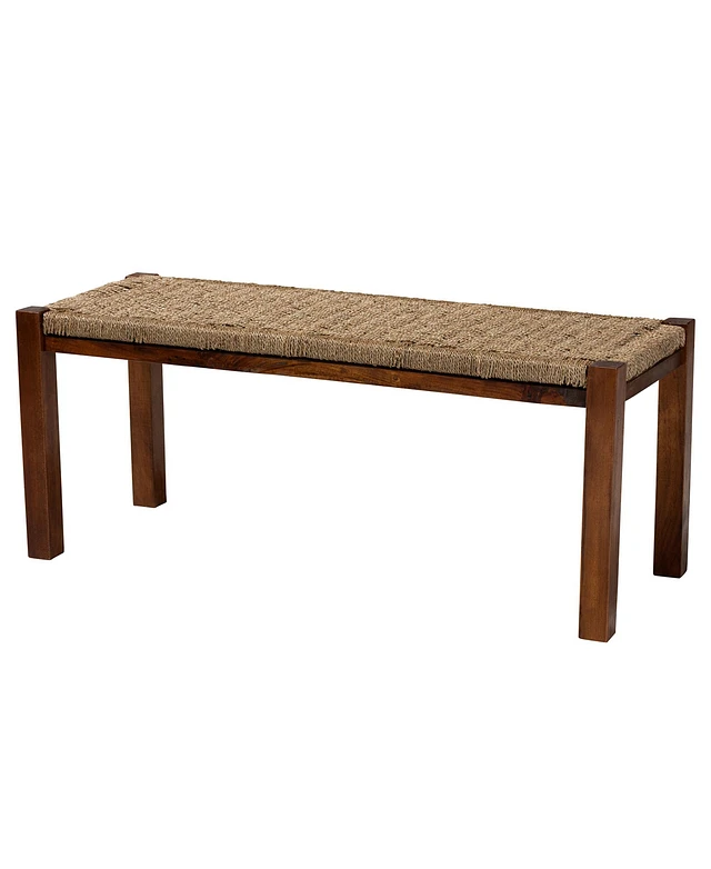 Baxton Studio Hermes Mid-Century Modern Transitional Natural Seagrass and Mahogany Wood Bench
