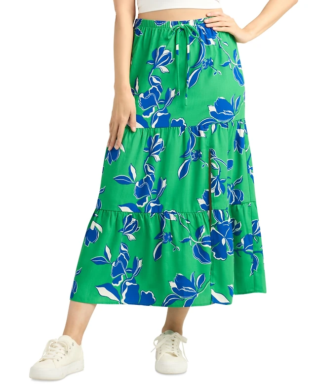 Bcx Juniors' Floral Pull-On Tiered A-Line Skirt
