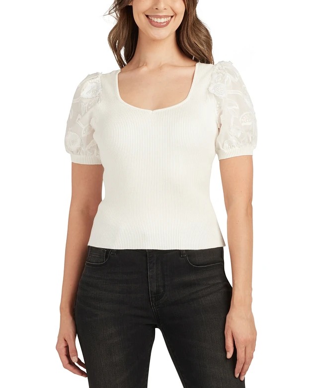 Bcx Juniors' Ribbed Embroidered-Sleeve Sweater