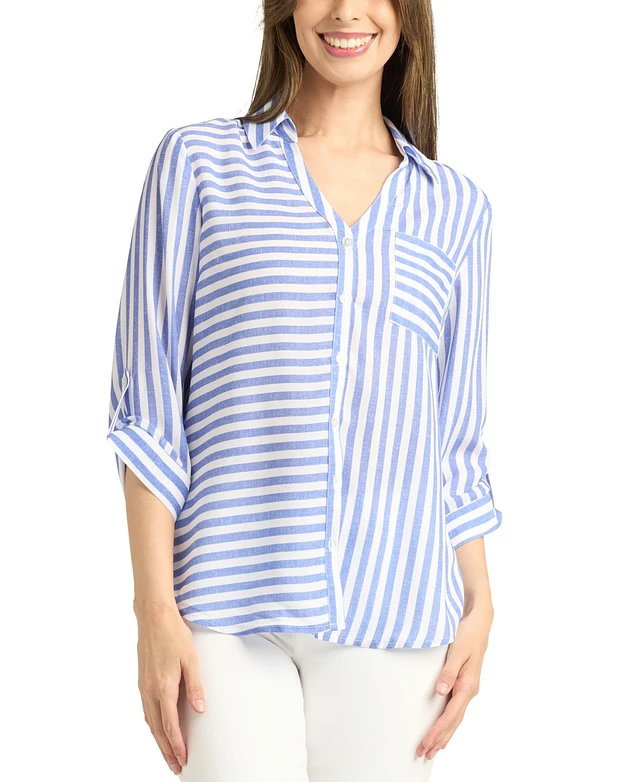 Bcx Juniors' Striped Button-Front 3/4-Sleeve Shirt