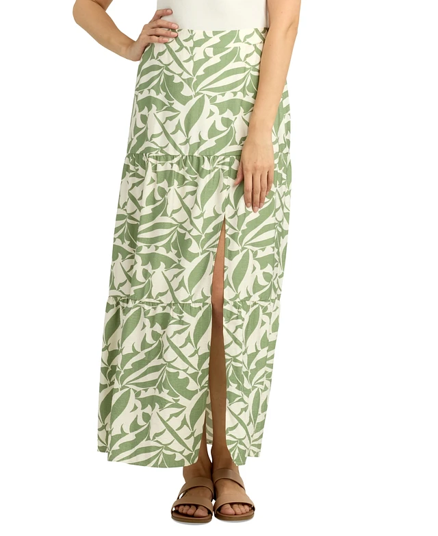 Bcx Juniors' Tiered Printed Side-Slit Maxi Skirt