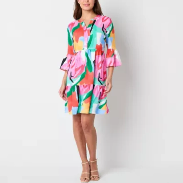 Be by CHETTA B Womens 3/4 Sleeve Abstract Babydoll Dress