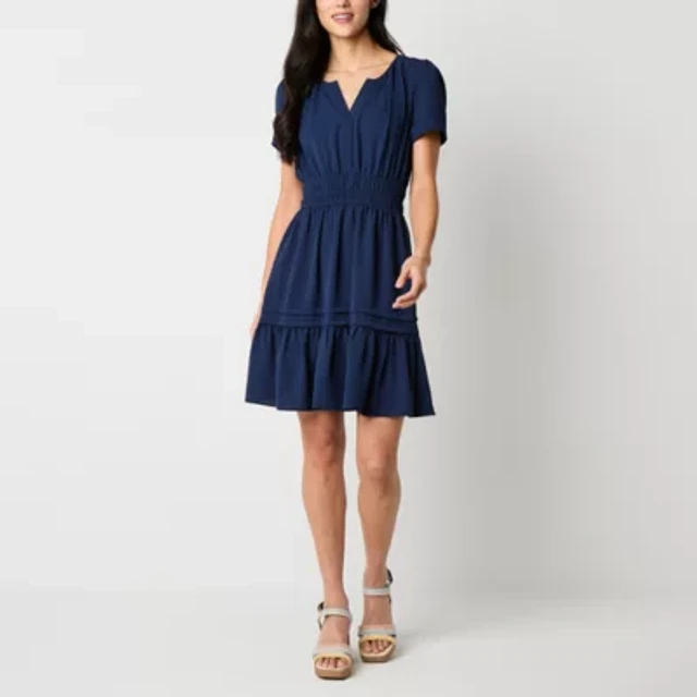 Be by CHETTA B Womens Short Sleeve Fit + Flare Dress Petite