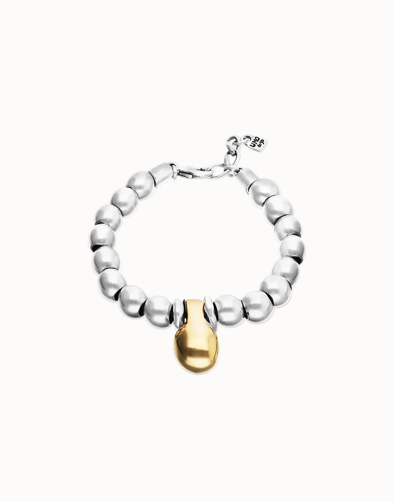 This bracelet pairs beads with a central pendant to create a design that pulses with its own energy. Rounded shapes link in a steady rhythm around your wrist, creating a visual cadence that comes alive with every movement.