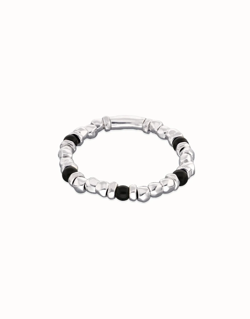 Beaded bracelet with silver and black Murano glass beads. Jewelry, skulls, and rock & roll. The collection Ser imparable is designed to bring out your most punk spirit; a spirit that prefers to ask for forgiveness rather than permission, a spirit that is unstoppable and gives it all. If you are surrounded by chaos and noise with the volume up to the max, Ser Imparable is the collection that will take you on stage like a true rock star.