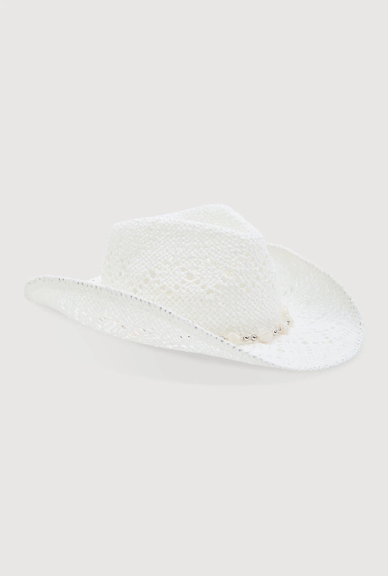 Beaded Trim Straw Cowboy Hat