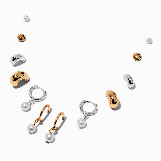 Silver-tone Pearl Crystal Earring Stackables Set - 6 Pack