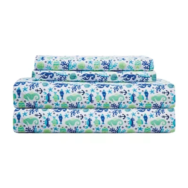 Beatrice Home Fashions Coastal Printed 4-Pc. Sheet Set