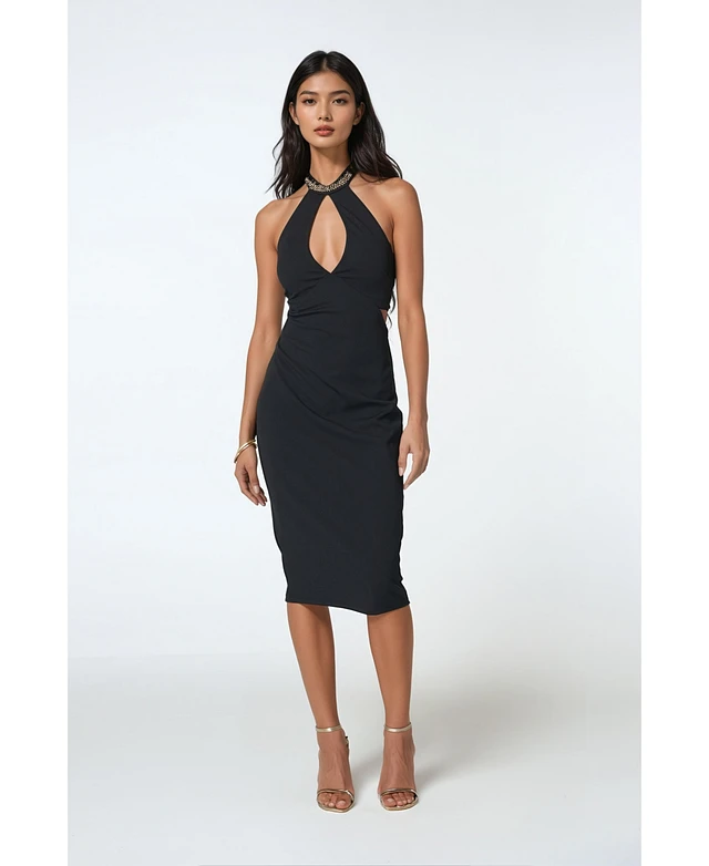 Bebe Women's ColorBlock Halter Neck Midi Dress