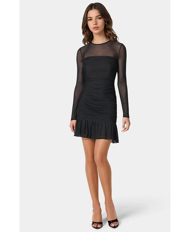 Bebe Women's Flounce Mesh Long Sleeve Mini Dress