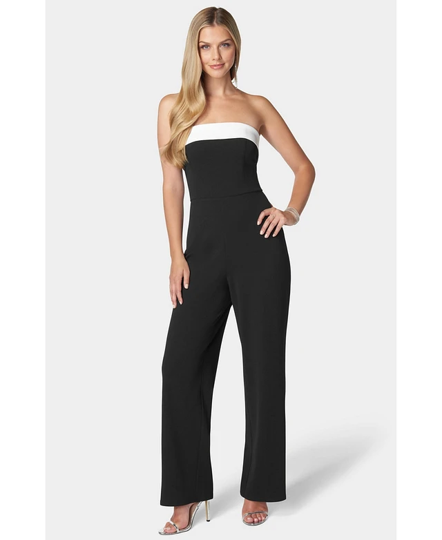 Bebe Women's Scuba Crepe Cuff Neck Strapless Jumpsuit