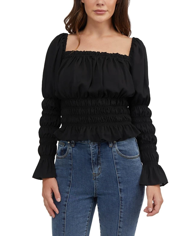 Bebe Women's Puff Sleeve Coated Ruched Top