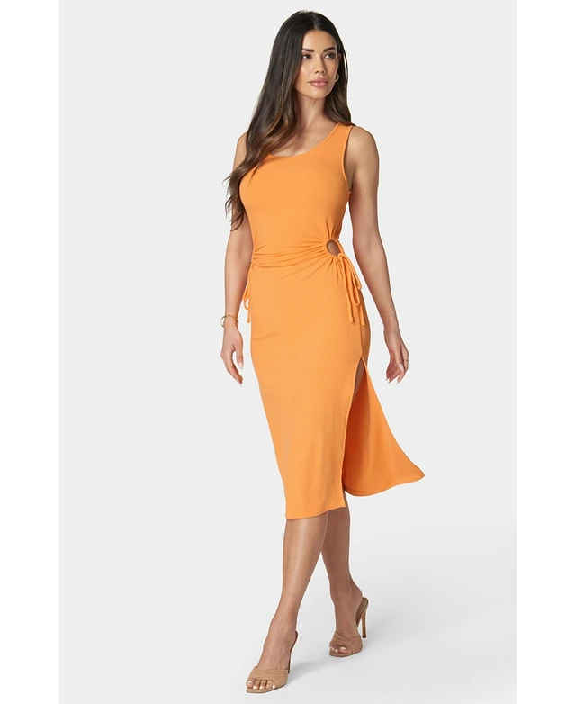 Bebe Women's Asymmetrical High Slit Bandage Midi Dress