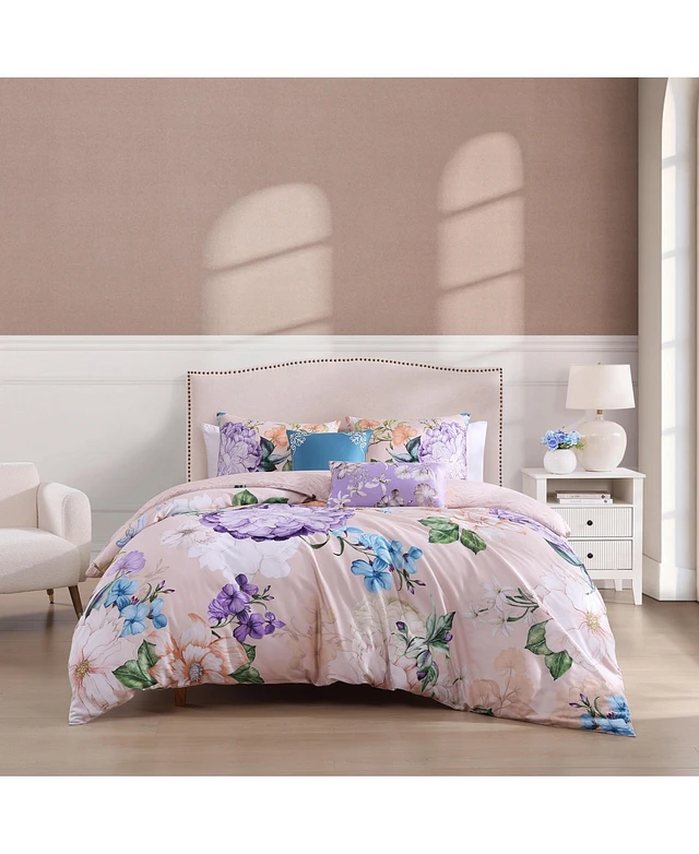 Bebejan Fresh Cut Flowers Bedding 200 Thread Count 100% Cotton Sateen 5 Piece Reversible King Comforter Set