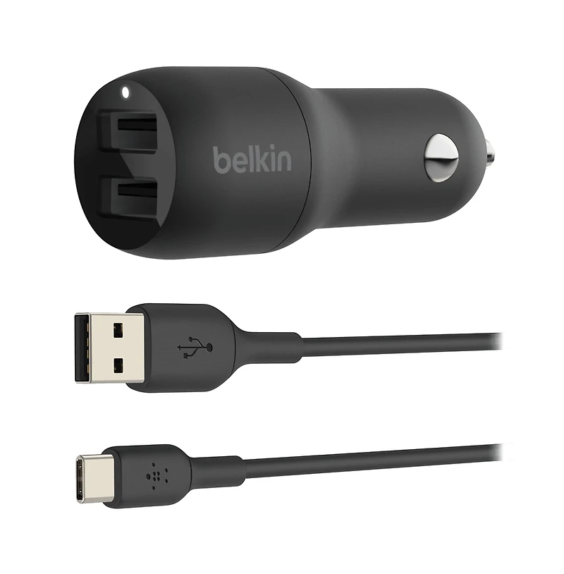 BoostCharge Dual Usb-a Car Charger 24W and Usb-a to Usb-c Cable,Includes 1m/3.3ft Usb-a to Usb-c cable,Dual ports charge two devices at once from a single car power socket,Compatible with any device that uses a Usb-a cable