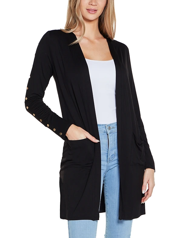 Belldini Women's Embellished Sleeve Knit Open Cardigan Top
