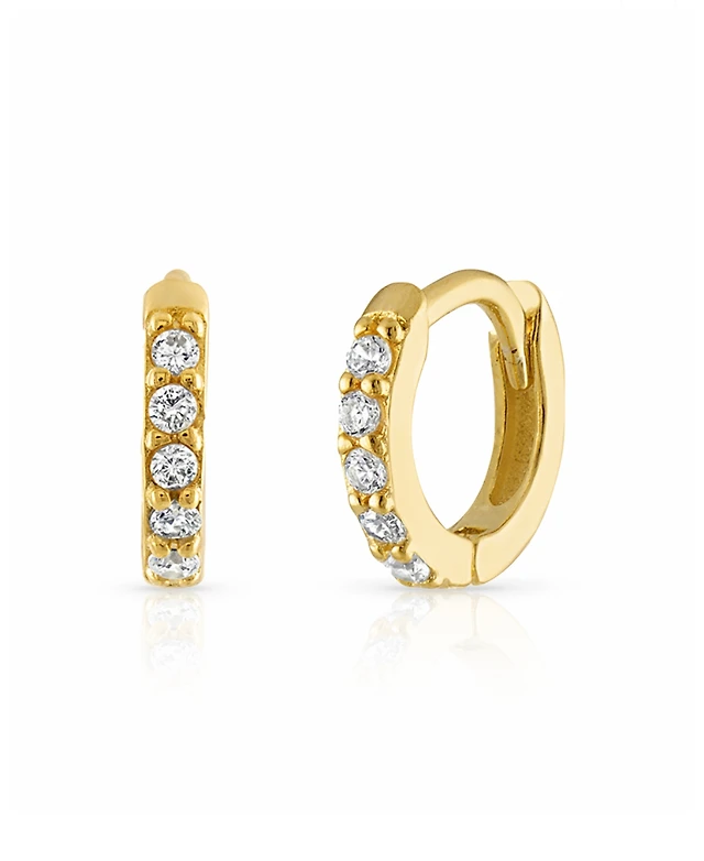 Ben Oni 18k Gold-Plated Sterling Silver Small Pave Huggie Hoop Earrings, 0.6"