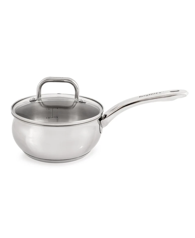 BergHOFF Belly Shape 18/10 Stainless Steel 6.25" Sauce Pan with Glass Lid, 1.5qt.