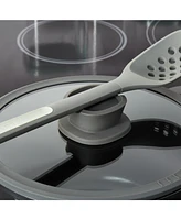 Leo Stone+ 5pc cookware set allows you to cook with confidence and a great addition to any kitchen. Made with recycled cast aluminum for great and even heat transfer. The stylish black body features a healthy and sustainable non-stick, nontoxic Pfas-free and Ptfe-free CeraGreen ceramic coating for easy release and clean-up, but with the convenience of using little to no oil. The glass lid with silicone rim prevents rattling and helps you keep an eye on your food. The integrated air vent and strainer make the pots suitable for all cooktops, including Induction, Electric, Gas, Halogen, vitro-ceramic, and downdraft cooktops. The spoon rest on the knob ensures clean cooking. The recycled aluminum construction ensures even heat distribution for consistent cooking results, while the non-stick coating makes clean up a hassle-free task. Package includes: 7"" Sauce pan 2.1qt., 8"" Stockpot 3qt., 10"" Fry Pan, 2x Glass Lids