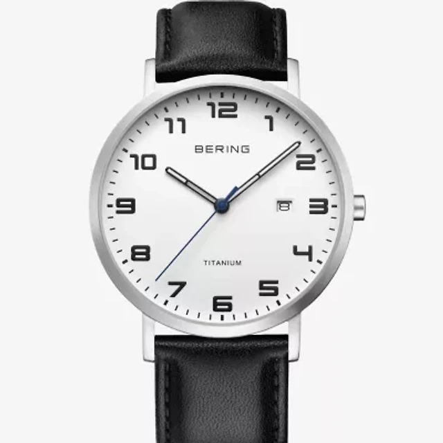 Bering Mens Black Leather Strap Watch 18640-404