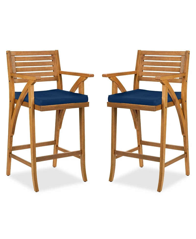 Best Choice Products Set of 2 Outdoor Acacia Wood Bar Stools Bar Chairs w/ Weather-Resistant Cushions in Ponce, PR