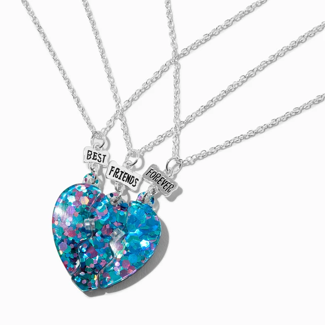 Best Friends Blue & Purple Glitter Heart Pendant Necklaces - 3 Pack