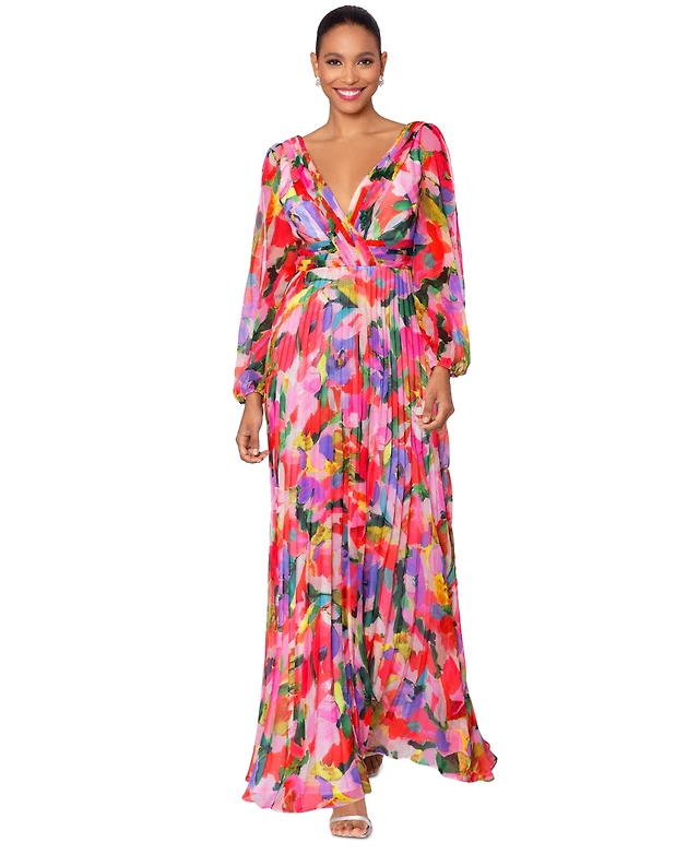 Betsy & Adam Women's Printed Pleated Strapless Gown