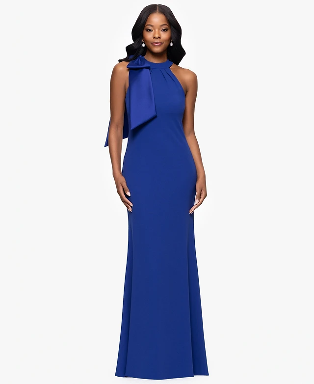 Betsy & Adam Petites Scuba Crepe High-Neck Long Dress