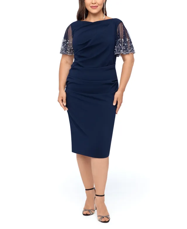 Betsy & Adam Plus Embellished-Sleeve Bodycon Dress