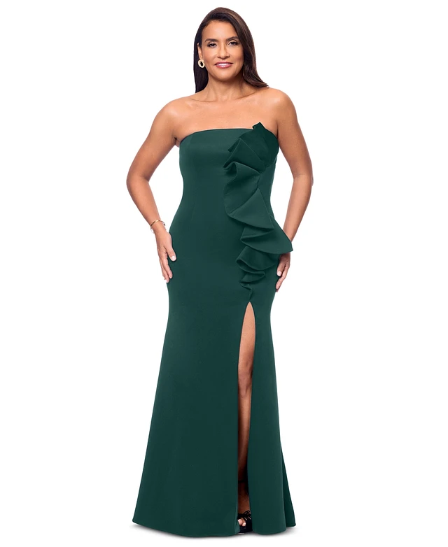 Betsy & Adam Women's Strapless Ruffled Evening Gown