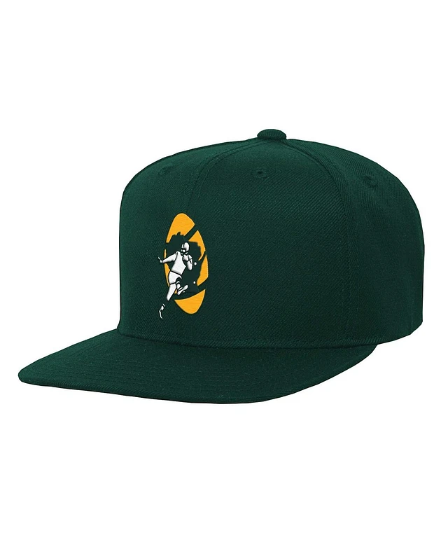 Big Boys and Girls Mitchell & Ness Green Green Bay Packers Gridiron Classics Ground Snapback Hat