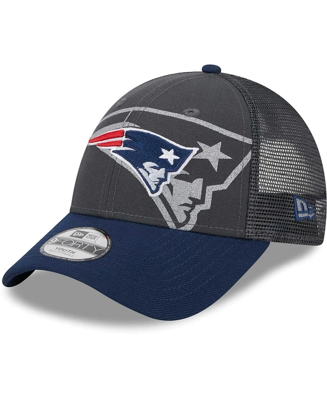 Big Boys and Girls New Era Graphite New England Patriots Reflect 9FORTY Adjustable Hat