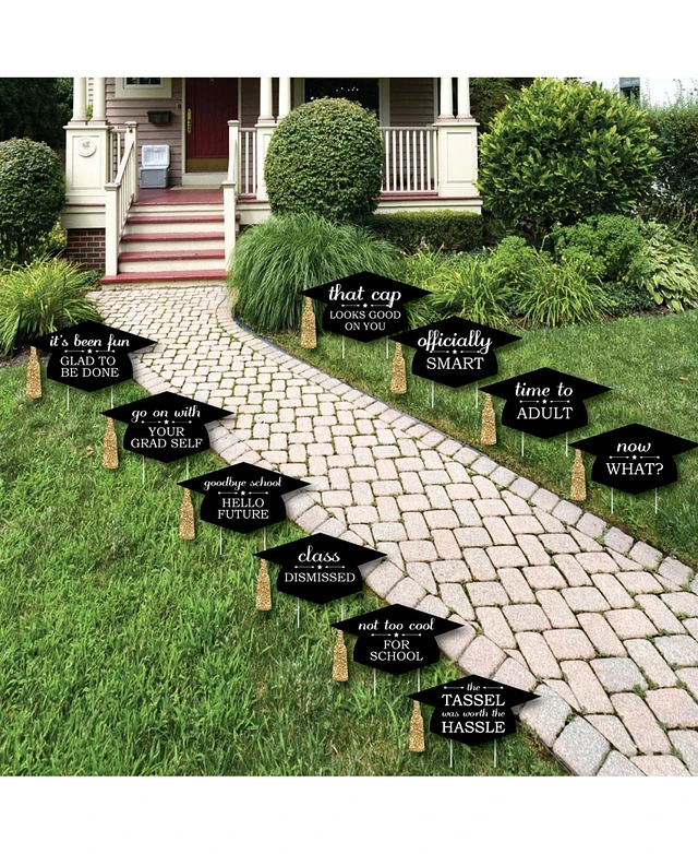 Big Dot of Happiness Gold Tassel Worth The Hassle - Outdoor Lawn Decor - Grad Party Yard Signs 10 Pc