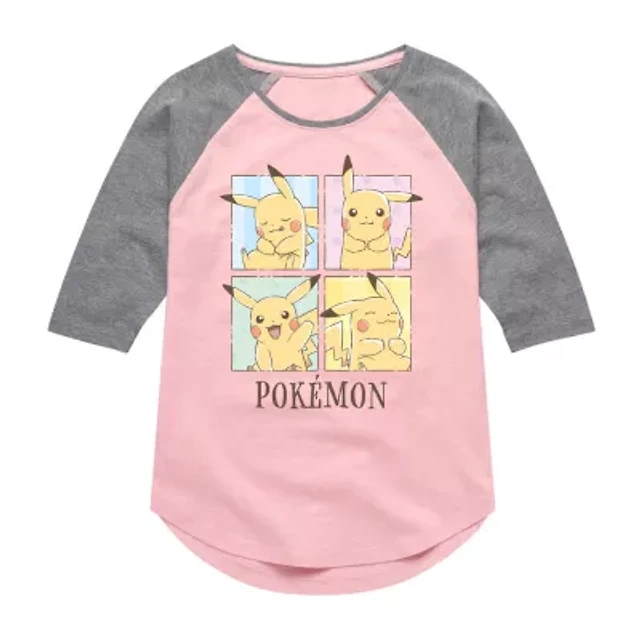 Big Kid Girls Crew Neck 3/4 Sleeve Pokemon T-Shirt