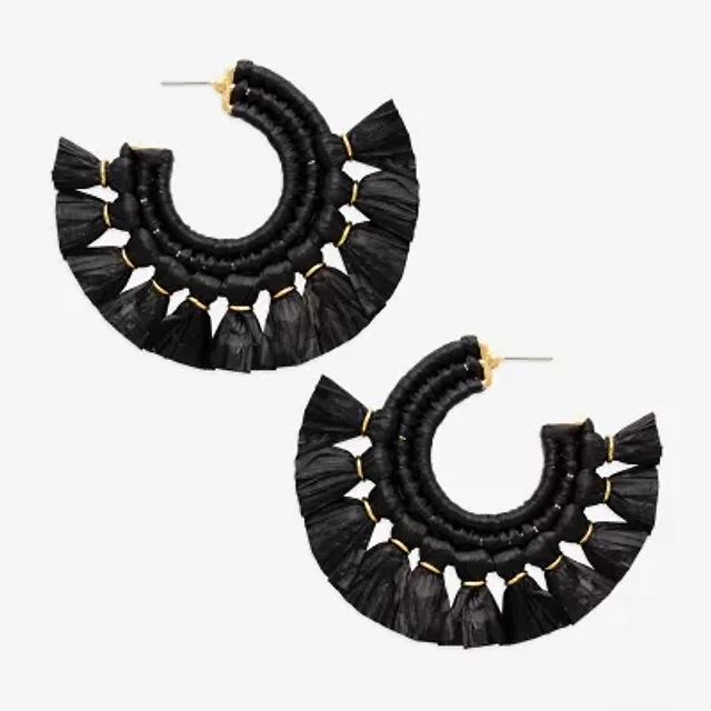 Bijoux Bar Black Raffia Womens Drop Earrings