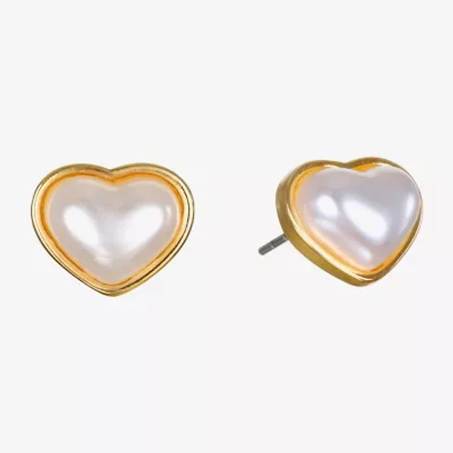 Bijoux Bar Delicates Gold Tone Simulated Pearl 10.1mm Heart Stud Earrings