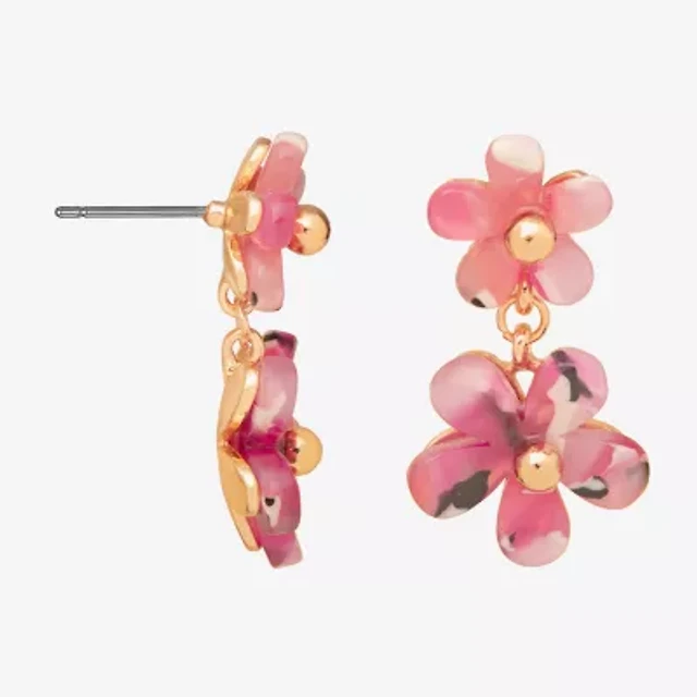 Bijoux Bar Delicates Gold Tone Womens Flower Drop Earrings