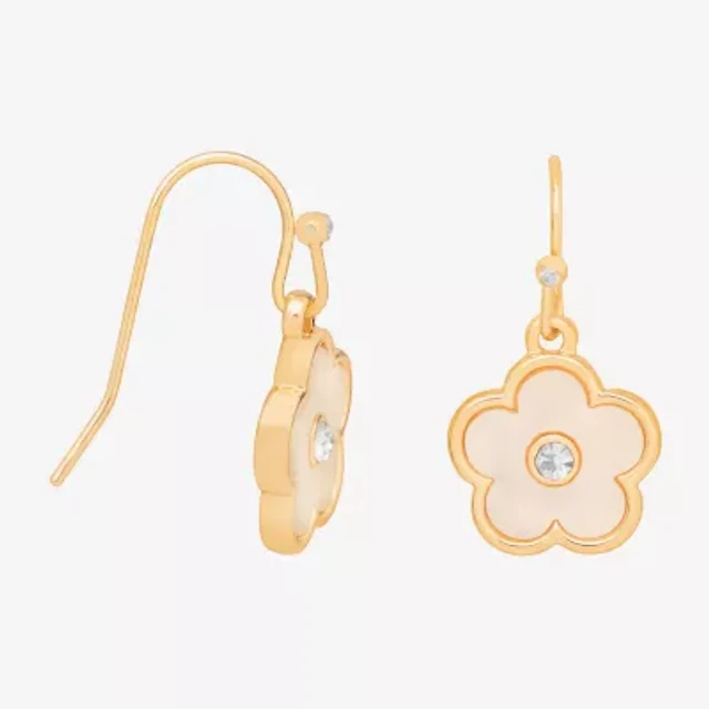 Bijoux Bar Delicates Gold Tone Womens Glass Simulated Pearl Flower Drop Earrings