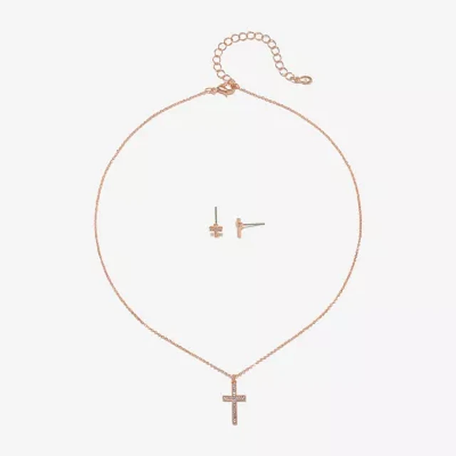 Bijoux Bar Delicates Rose Tone Womens Glass Cross 2-pc. Jewelry Set