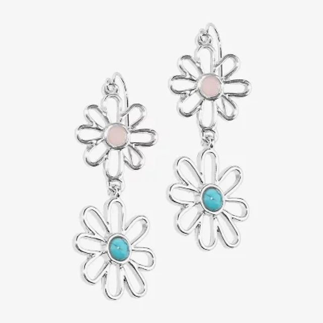 Bijoux Bar Delicates Silver Tone Womens Flower Drop Earrings