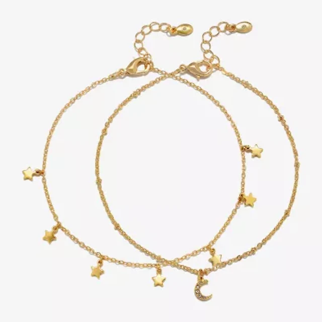 Bijoux Bar Delicates Womens 9 Inch Solid Link Moon Star Ankle Bracelet