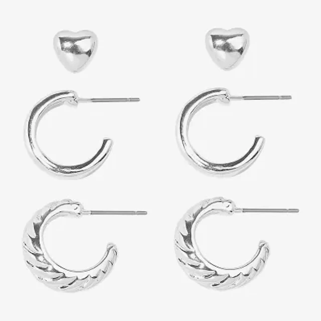 Bijoux Bar Delicates Womens Heart 3 Pair Earring Set
