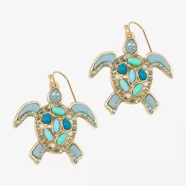 Bijoux Bar Gold Tone Turtle Womens Blue Glass Simulated Pearl Drop Earrings