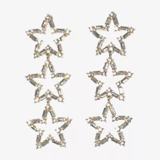 Bijoux Bar Gold Tone Womens Crystal Star Drop Earrings