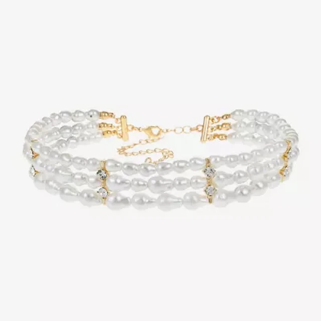 Bijoux Bar Gold Tone Womens Glass Simulated Pearl Choker Necklace
