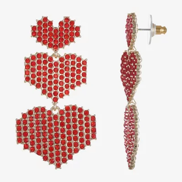 Bijoux Bar Gold Tone Womens Red Glass Heart Drop Earrings