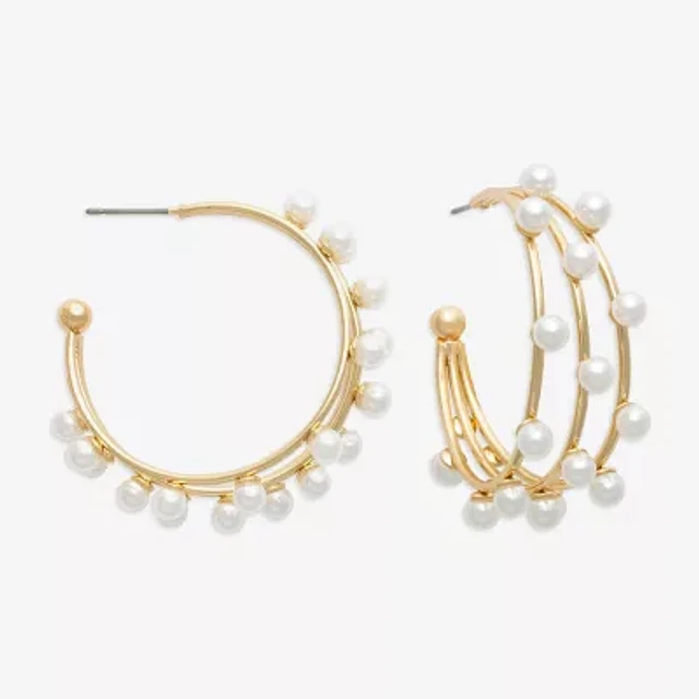 Bijoux Bar Gold Tone Womens Simulated Pearl 12.4mm Hoop Earrings